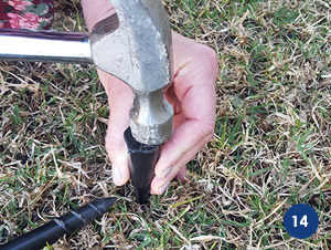 The Plasti Frame can be pre-assembled, just as is done with the current Plasti Pole method, and using a mallet is easily secured into the ground.